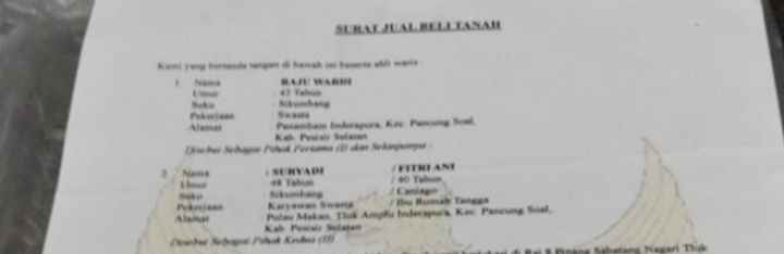 “Surat jual beli tanah Negara di Kecamatan Bab Tapan yang dijual oleh Raju Wardi tersebut sudah saya cabut dan telah saya batalkan secara resmi,” tegasnya.